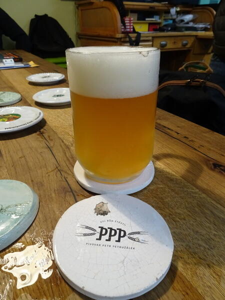 . Sládek Petr to bardzo sympatyczny, gościnny człowiek, pomimo nawału pracy chętnie zaprosił nas do browaru, nawet proponując że na stację przyjedzie po nas samochodem. Nie chciał słyszeć o zapłacie za wypite piwa a jeszcze obdarował każdego z nas dwoma PET-ami "na drogę"