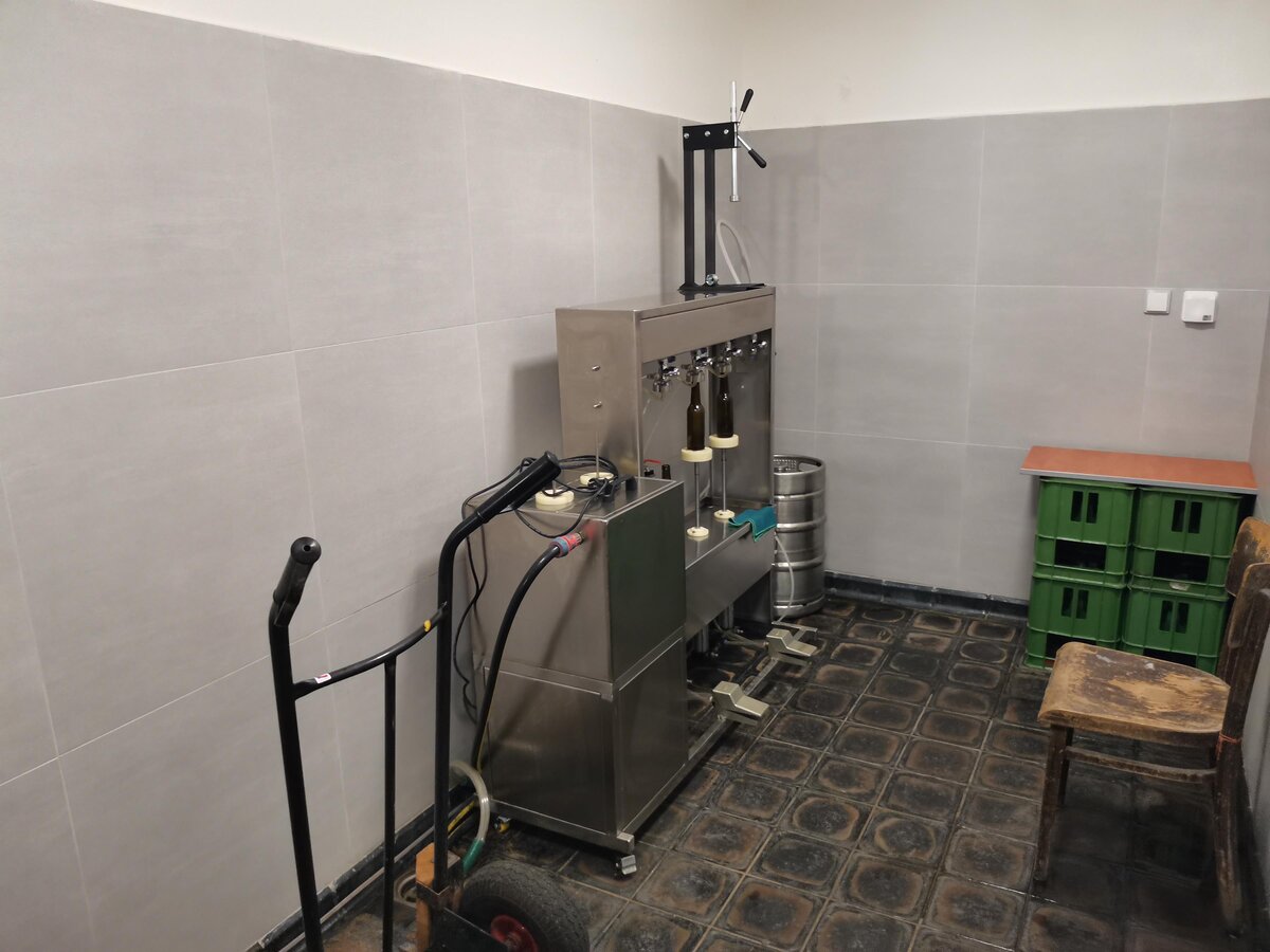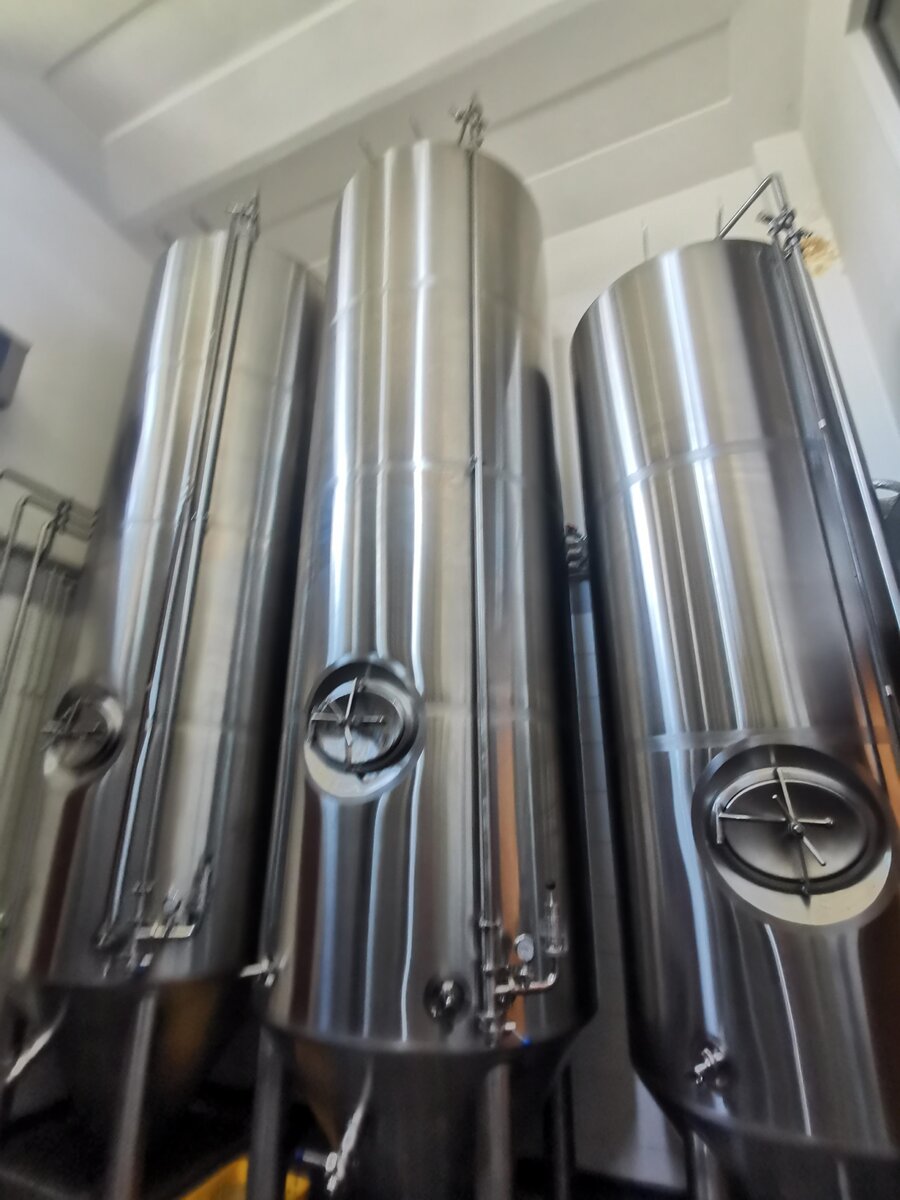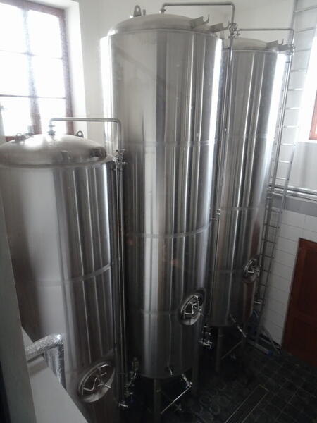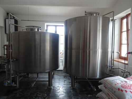 . Dokładnie naprzeciw, w pomieszczeniu po drugiej stronie korytarza znajduje się whirpool i zbiornik wody. Idąc dalej korytarzem po prawej za szybą widzimy tankofermentory. Jednak stoją one piętro niżej w piwnicy - mając małą średnicę a dużą wysokość sięgają sufitu na poziomie parteru, co wymagało wybicia stropu by móc je zmieścić. Są 4 o pojemności 40 hl i 2x20 hl.