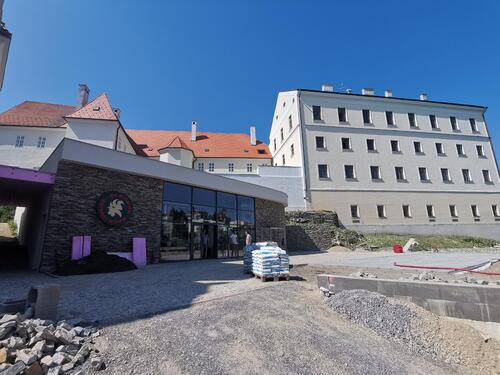 Plecami graniczy z murami Klasztoru Minorytów, który z drugiej strony za sąsiada ma Browar Znojmo.