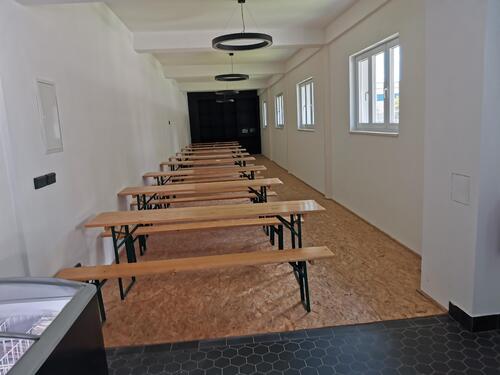 Spora część browaru jest widoczna z okolic baru, a z jego prawej strony jest długa sala ze stolikami przygotowana na chłodniejsze, lub deszczowe dni. Natomiast w lecie można zasiąść w letnim ogródku, tuż przy drodze na betonowych płytach.