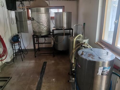 Warzelnia to niespełna 300 litrowe gary, a do tego trzy tankofermentatory o pojemnościach: 600/400/250 litrów. Tak więc póki co jest skromnie, ale niewielka możliwość rozbudowy instalacji istnieje.