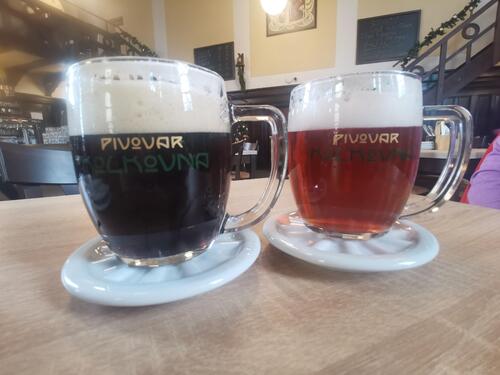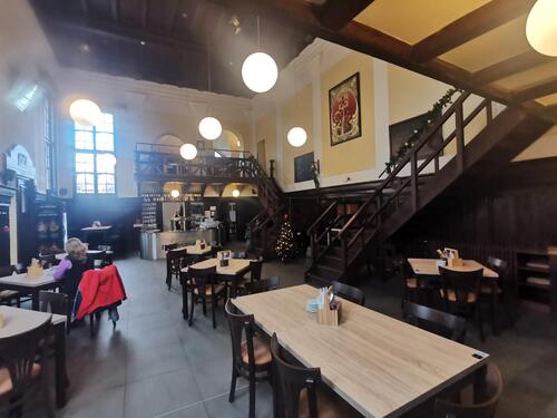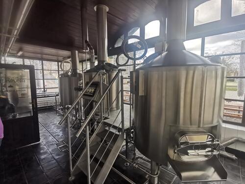Przed browarem bardzo duży letni ogródek, a z drugiej strony budynku spore szklenie przez które mamy pogląd na warzelnie. Niestety obsługa na temat browaru nie wie nic, zobaczyć nie można, bo sanitarne obostrzenia, a sladek w soboty nie pracuje. Natomiast można sobie zamówić płatną wycieczkę.