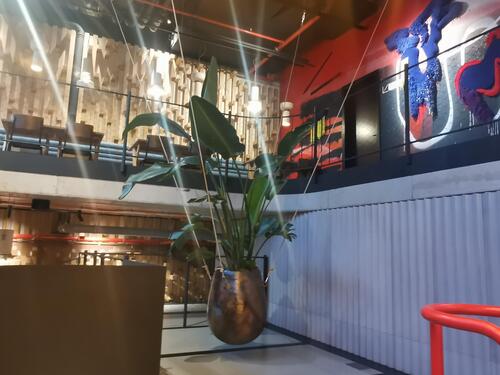 Wnętrze lokalu podobnie jak biurowiec robi wrażenie. Jest mega nowocześnie, mocno ledowo, neonowo i widać, ze ktoś sypnął grubą kasą. Ledowe oświetlenie robi robotę, podwieszane na linach wielkie donice z jeszcze większymi roślinami, dwa bary (na każdym piętrze), oraz 500 litrowa warzelnia przeniesiona z nieistniejącego już browaru U Supa posiada rzadko spotykaną przezroczystą kadź. Obecnie U Supa wraz z Fuze tworzą jedna firmę.