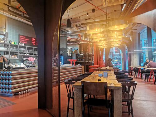 Browar wraz z restauracją działa od kwietnia 2024 roku i zajmuję spora część ogromnego biurowca Nové Masaryčka. Trzeba przyznać, że budynek wygląda bardzo ładnie i na pewno przyciąga wzrok.