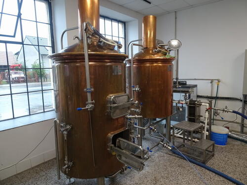 Pokryta miedzią warzelnia jest malutka, jedna warka to raptem 250 l. Kadź filtracyjna jest w połączeniu z whirpoolem. Sládek ma sporo roboty przy warzeniu, jako że dwa tankofermentory mają po 20 hl (czyli na jeden 8 warek!), są też 2x10 hl i 1 x5 hl (ten odkupiony od browaru Garp). Jest też tank leżakowy 10 hl i zbiornik wody gorącej. Sprzęt pochodzi z Chin.
