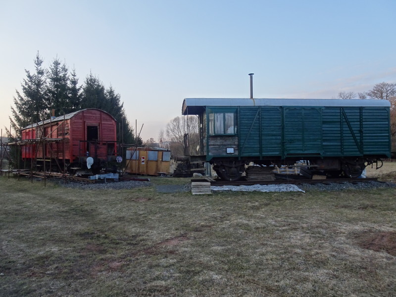 . Do tego nie byle jaki, bo jak się okazało niedawno zakupił 2 wagony - jeden kryty z 1949 roku i brankard z 1964. Zostały ustawione około 100 m od browaru na fragmencie toru, a Petr właśnie przeprowadza ich remont.