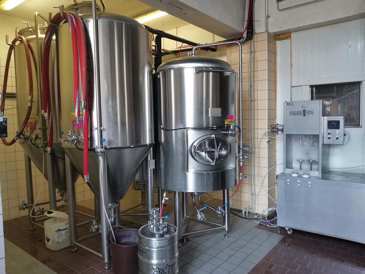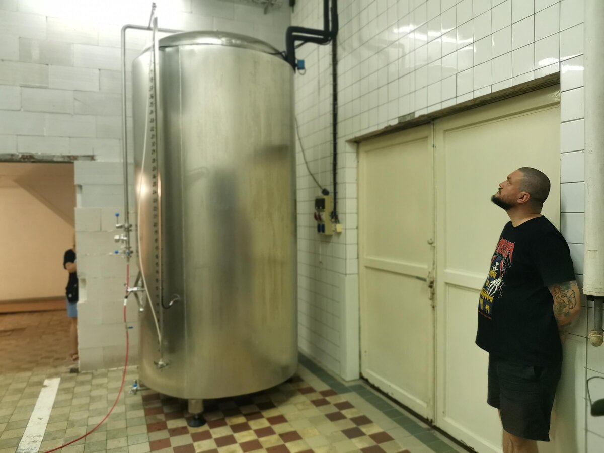 Browar można rzec zajmuje trzy piętra. Na górze magazyn słodu, skąd trafia ona do warzelni na parterze, a w piwnicach stoi pozostała część tankofermentatorów. Doliczyłem się ich 12-tu w pojemnościach od 1000 do 3000 litrów, więc jest tego sporo. Natomiast największe wrażenie robi pomieszczenie z drewnianymi beczkami w których leżakuje piwo. Są to beczki po francuskim winie, oraz po burbonie. Czas leżakowania jest różny, a podobno i pięcioletnie tam są
