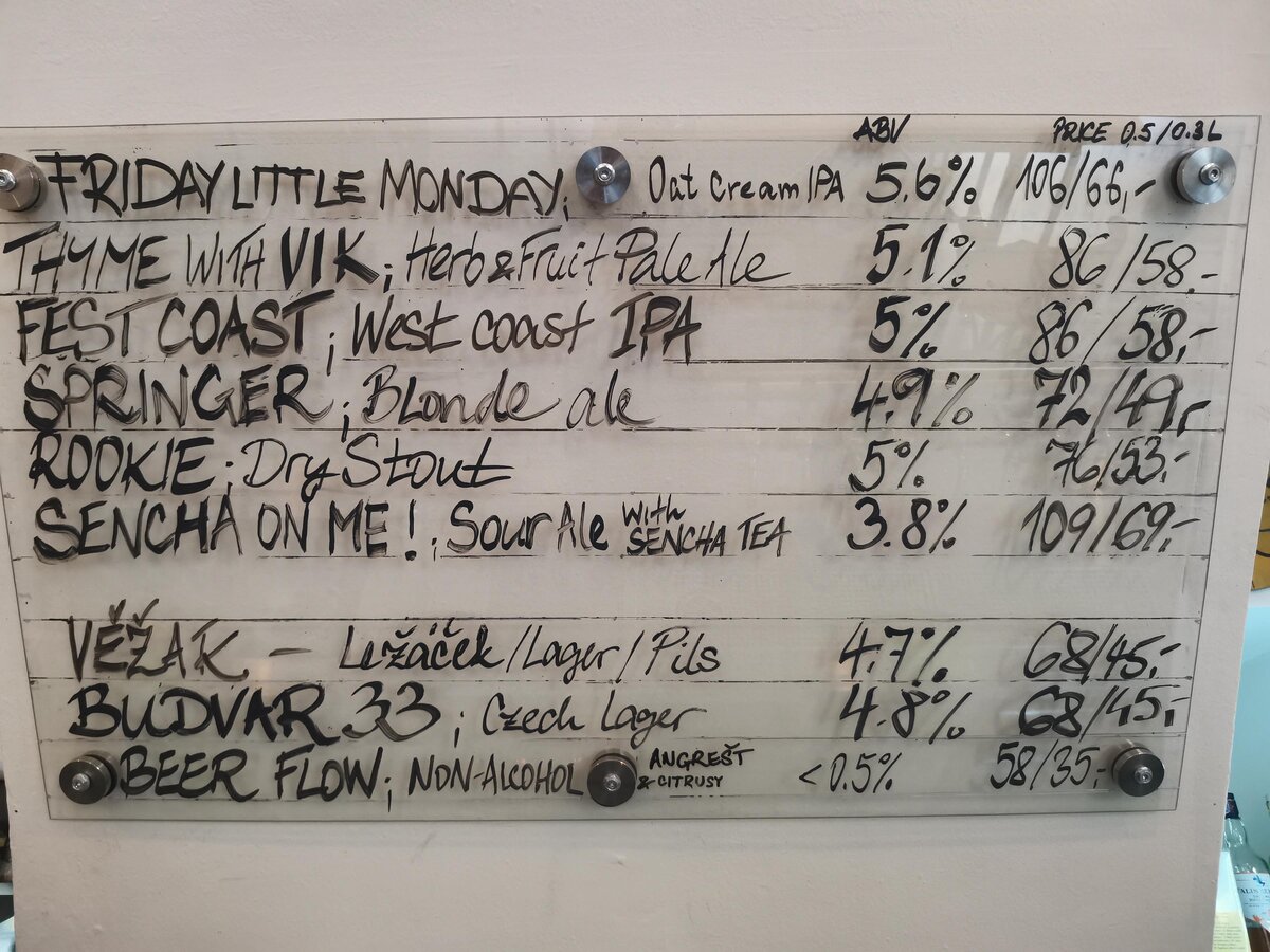 Całość w wąskiej uliczce, tuz nieopodal browaru Poupe. Na kranach tym razem siedem piw, oraz bonus jak się domyślam dla dla smakoszy, czyli lany Budvar