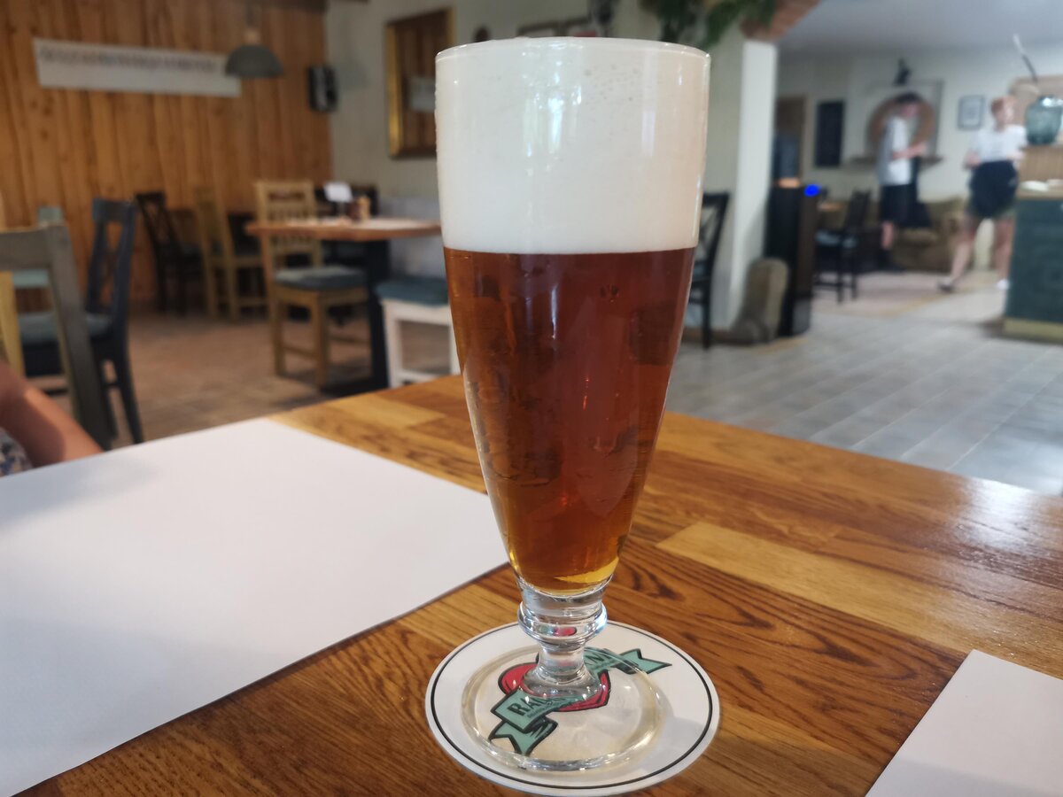 Piwo warzone jest za budynkiem restauracji, w jednym z zabudowań na końcu posesji, a dostępne jest w tejże restauracji. Na kranie było tylko jedno piwo i była to polotmava pszenica. Nie przepadam za pszenicą, ale skoro tam dotarliśmy, do głupio było nie spróbować.
