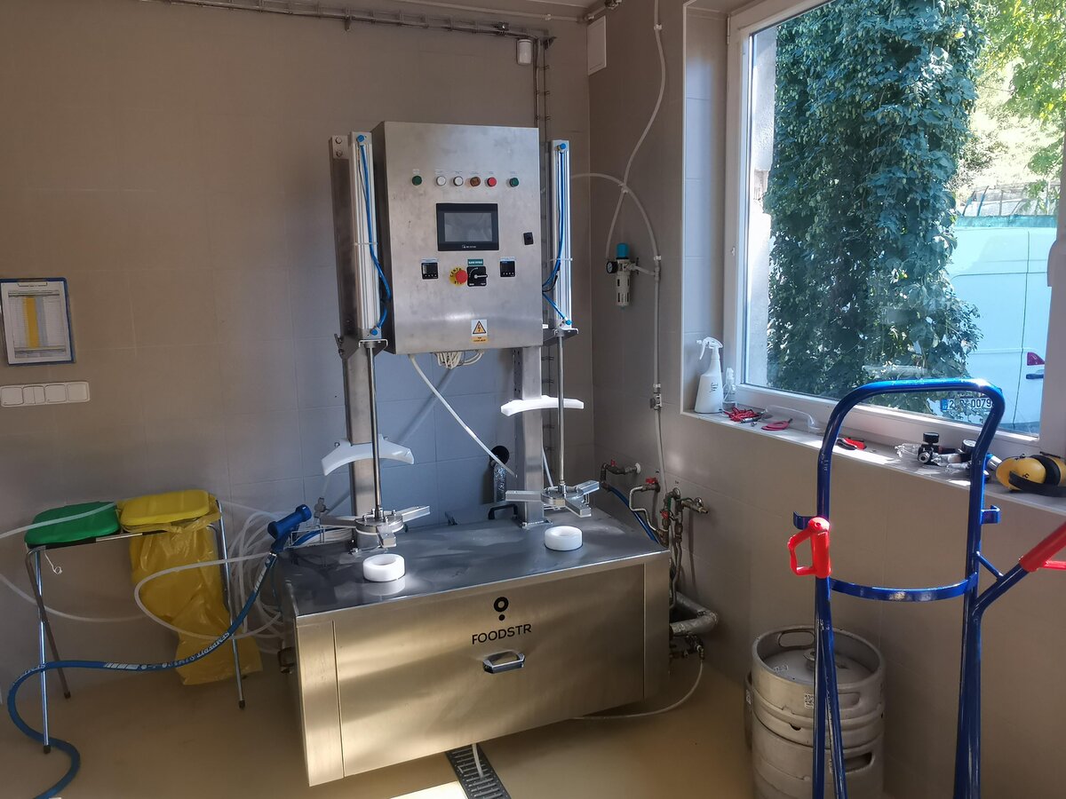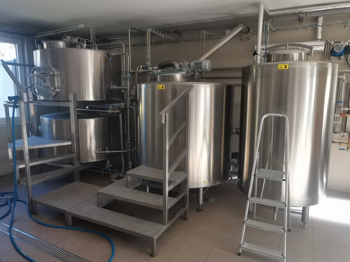 . To dzięki niej mieliśmy możliwość zobaczenia browaru.Obecnie wygląda to tak: pierwsze pomieszczenie -magazyn słodu, dalej-warzelnia 1000l, w kolejnym 7 x 1000l. tanków, napełniarka do butelek, myjka do kegów. Kolejne są pomieszczenia magazynowe w których już zaplanowano ustawienie 2000l. tanków. Jak widać rozbudowa i to dość szybka będzie. Na samym końcu, przy rampie, będzie wspomniana firmowa hospoda. Szefowa to również barmanka, a że w sobotnie południe ludzi w piwnym ogródku zawitało całkiem sporo, musieliśmy szybko uwinąć się ze zwiedzaniem i wracać do baru. Tam na kranach czekały trzy piwa: