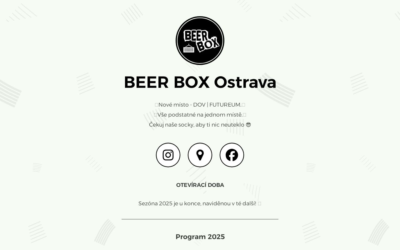 BEER BOX znajduje się w dzielnicy Vítkovice, dokładniej na pozostałościach trupa huty i kopalni dalej górujących nad miastem - terenie obecnie zrewitalizowanym i przyciągającym mieszkańców jak i turystów. Zlokalizowany na tyłach budynku Futureum - na przeciwko Národní zemědělské muzeum (tam był festiwal Lopni Beczku).
