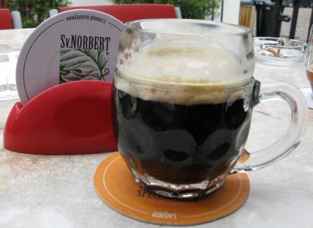 Moja druga wizyta u Norbertanów/Premonstratensów. Tym razem nie popełniłem błędu sprzed roku i nie poszedłem do restauracji (dlaczego nie przeczytałem wcześniej ostrzeżenień Zythuma???). Ostatnim razem piłem tam ciemne i przepyszną pszenicę. Tym razem (była to akurat niedziela Palmowa) było ciemne, amber i velikonocni special od którego z kumplem zaczęliśmy. Był świetny, ale najlepiej spasował mi jednak amber. Jedzonko tylko w części restauracyjnej było ostatnio lepsze. Gulasz który nam podano nie był za ciepły. Dla piw jednak warto wspinać się na strahovskie wzgórze zawsze.