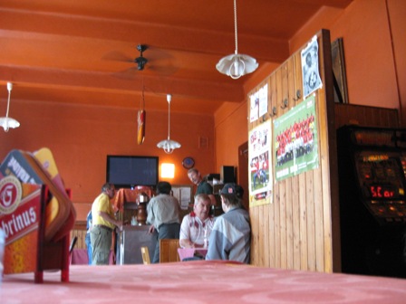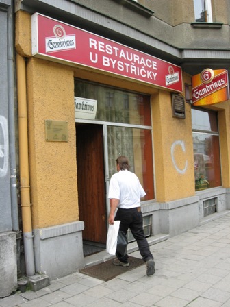 ciągnęliśmy w stronę dworca, gdy nagle z lokalu po drugiej stronie ulicy wychynął pewien pan. wystarczyło jedno spojrzenie na jegomościa i już wiedzieliśmy: trzeba tam koniecznie wejść. restauracja (szumna nazwa) u bystrziczki jest zapomnianym od boga miejscem, w którym jedynym widomym świadectwem naszych czasów jest plazmowy telewizor na ścianie, zapewne ślad niedawnych mistrzostw europy. reszta jest zapyziała, aż się serce raduje. mierzący pod dwa metry miły barman też wygląda jak rekwizyt z innej epoki. do pełni szczęścia brakowało, żeby serwowany tam lany gambrinus smakował tak, jak musiał smakować dawniej, kiedy ten lokal przeżywał lata świetności. polecam wszystkim miłośnikom menelskich klimatów. aha, byliśmy w południe, więc było swojsko. nie wiem, jak tam wieczorami bywa.