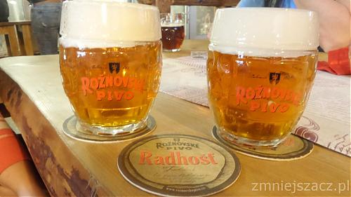 - Radhošť světlé 10,9°. Barwy ciemno złotej, mocno mętne. Piana na około 3 cm okazała się niezbyt mocna, znikła dość szybko do cieniutkiego kożuszka. Zapach przyjemny, wyraźny, drożdżowo - kwiatowy. W smaku piękna chlebowość poparta miłą goryczką z nutą owocową, czyli kwintesencja czeskiego jasnego ležáka z mninibrowaru. Pyszne, byłaby pełna 5 gdyby nie słaba piana. 27 kč.