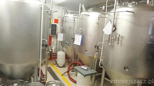 W sali są zaledwie 4 stoły, za którymi stoją kotły w których akurat w czasie naszej bytności, warzył piwo pan sladek.