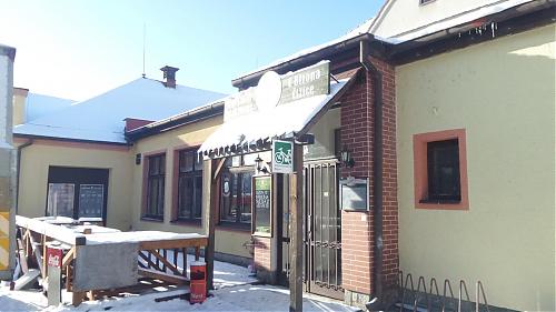 , i chętnie dyskutował nie tylko na piwne tematy. Okazało się że jego ojciec był Polakiem z Wałbrzycha choć on sam dawno w Polsce nie był. Zapraszał wieczorem na koncert miejscowego zespołu (w małej salce trwała próba) i na spotkanie z właścicielem, który podobno zna historię każdego z pozyskanych przez siebie starych szyldów zdobiących ściany.Zachwalał też letnie grillowanie w sporym ogródku na tyłach restauracji z widokiem na malowniczą dolinę Úhlavy.