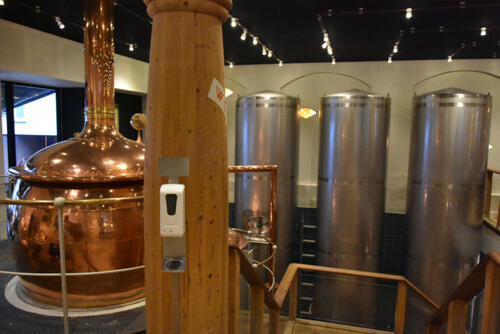 Całość sprzętu jest dobrze widoczna po zejściu na poziom -1 gdzie są wejścia do toalet i bar (był akurat nieczynny). Jest on półokrągły, umieszczony wokół czteroczęściowego tanku wyszynkowego z ciemnej miedzi, równie wielkiego jak te leżakowe. Sięga on górnej sali gdzie również jest podobny bar z wyprowadzonymi rurami do 4 nalewaków w dwóch kolumnach.