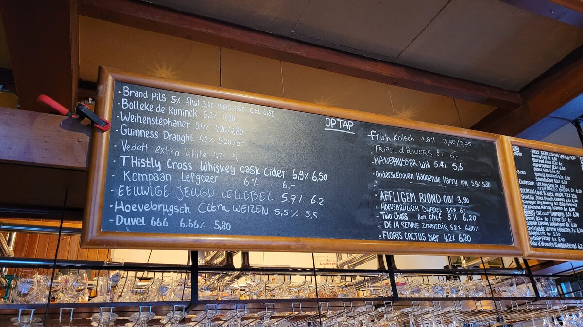 Mają ze 20 kranów, wzięliśmy Citra Weizena z Hoevebrugsch (taki sobie) i Ondersteboven Hanging Harry IPA (tu gorzej) z "czegoś" co jak się później okazało chyba powiązane jest z Grolschem.