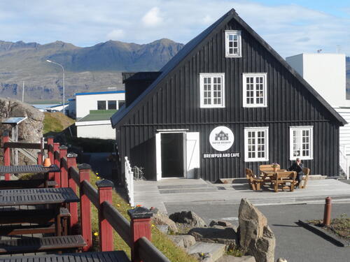 Do Djúpivogur dotarliśmy wieczorem. Położony obok portu BrewPub, odkryty przez nas po godzinie 22, był już wówczas nieczynny. Ku naszemu zdziwieniu (i wbrew informacjom odszukanym w internecie) otwarcie lokalu miało miejsce już o godz. 9 rano następnego dnia. Dzięki temu mogliśmy odwiedzić to miejsce jeszcze przed planowanym odjazdem w dalszą podróż.
