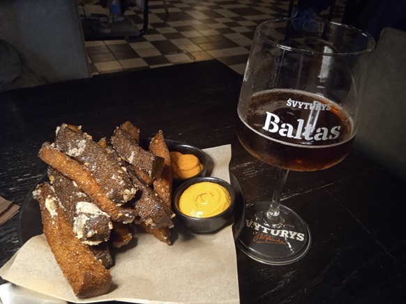 Ja ograniczyłem się do ulubionej w krajach bałtyckich przekąski w postaci opiekanego w czosnku ciemnego pieczywa z sosami. Spora porcja w cenie 8,30 euro.