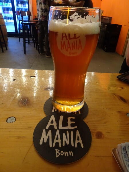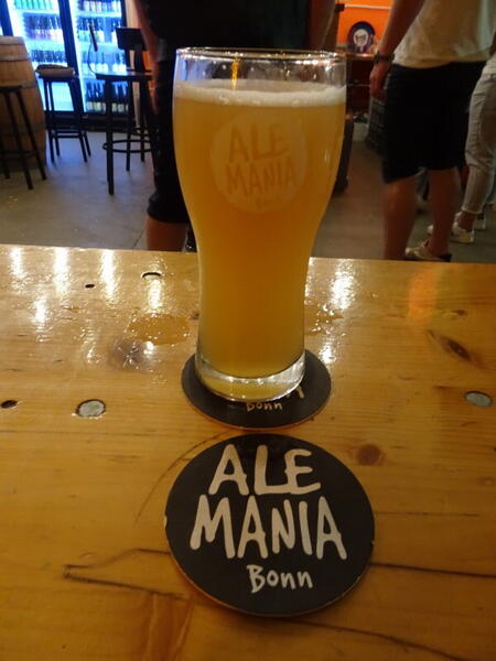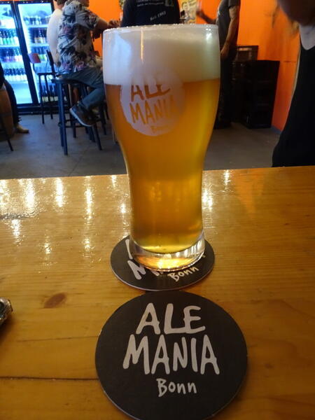 Gdy w jedynym sensownym browarze (nie warzącym kölschów) Braustelle w Köln https://www.browar.biz/forum/piwo/pi...59#post2335759 spróbujemy już wszystkich piw, a chcemy jeszcze wypić coś ciekawego, w ciągu niecałej pół godziny jazdy pociągiem możemy przemieścić się do Bonn. Funkcjonują tu 3 browary, a każdy z nich oferuje normalne piwa, także kraftowe. Nam najciekawszym wydał się browar Ale-Mania, więc po zwiedzeniu miasta postanowiliśmy w nim zakotwiczyć