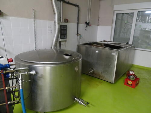 Warzelnia o wybiciu 10 hl jest dość nietypowa. Prostokątna kadź służy jako zacierna z płaszczem wodnym (65°C), potem zacier trafia do kotła obok. Ździwiły nas stojące obok kadzi sita filtracyjne, okazało się, że po ich zamontowaniu służy ona również jako filtracyjna