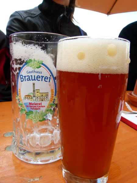 Browarek znajduje się w pięknym miejscu, na końcu ogromnego starego ogrodu Neuer Garten, zaraz za malowniczym pałacem Cecilienhof i tuż nad brzegiem jeziora Jungfernsee. Browar przemysłowy działał tu do lat 70-tych XX w. potem popadł w ruinę i zarósł krzakami. Remont, a właściwie odbudowa, została ukończona w 2003 r. a cały jej przebieg wraz z opisem dokumentuje wystawa zdjęć naprzeciwko warzelni. Na parterze i na piętrze można także podziwiać pamiątki po dawnym browarze a i obecnie pracujące urządzenia nie są schowane przed oczami ciekawskich. Łatwo dostępna warzelnia to norma, ale tu możemy obejrzeć też kadzie fermentacyjne, tanki leżakowe i z gotowym do rozlewu piwem, gdyż znajdują się za przeszklonymi drzwiami. Restauracja jest duża, siedzi się na długich ławach a łukowe sklepienia imitują piwnicę. Jednak my wybraliśmy opcję smakowania piwa na zewnątrz. Stoły umieszczone są prawie nad samym jeziorem, co pozwala na podziwianie pięknego widoku i bliski kontakt z bardzo śmiałym ptactwem wodnym podchodzącym wręcz pod nogi. Jeśli przyszliśmy tylko na piwo, możemy zatrzymać się zaraz za wejściem na teren browarku, gdzie znajduje się kiosk z nalewakami. Pije się tam przy blacie kiosku lub na stojąco przy wysokich, okrągłych stolikach wśród drzew nad brzegiem jeziora.