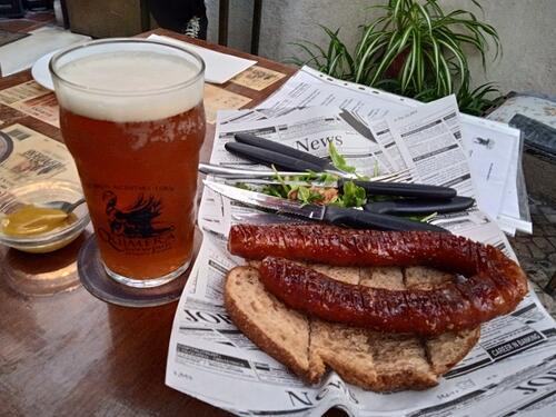 Ja wybrałem grillowaną kiełbaskę Chorizo (na zdjęciu z piwem Bret Brux).