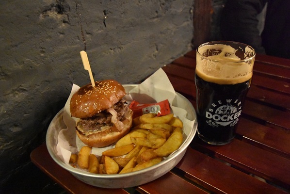 Do jedzenia oczywiście fast food - frytki, skrzydełka, kurczaki, burgery w cenie 950 - 1390 RSD (34 - 49 zł).