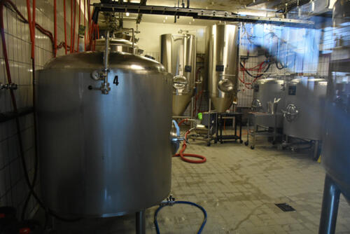 W środku jest jedna główna sala z kilkoma dużymi stolikami, barem i miedzianą warzelnią. W chłodnym pomieszczeniu obok widoczna jest reszta instalacji.