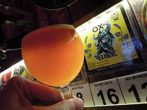 Kolor: Złoty, mętny. [5] Piana: Skromna nawet zaraz po nalaniu, zanika do cienkiej warstwy. [3] Zapach: Bardzo delikatny aromat owoców tropikalnych. Tu mogło by być zdecydowanie intensywniej. [3.5] Smak: Słodowość i goryczka stonowane, bardziej wyrazisty jest owocowy charakter, jednak ze specyficznym mdławym posmakiem melona. Wyczuwalna lekka cierpkość. Całkiem lekkie jak na 20° Blg, alkoholu nie czuć. [4] Wysycenie: Średnie, w porządku. [5] Opakowanie: Bycza żółć? Ostro, ale lubię takie podejście w nazewnictwie piw. [4.5] Uwagi: Na pierwszą warkę się nie załapałem, kolejna była mocno alkoholowa, teraz jest całkiem przyzwoite Double IPA.