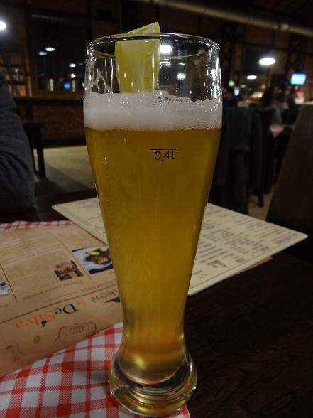 Kolor: Jasno żółty albo matowo słomkowy. Piwo mętne ale jak na pszenicę to trochę za mało. [3]