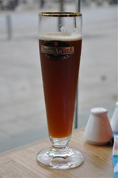 Kolor: miedziano-wiśniowy, mętne [4] Piana: podane z malutką pianką, którą szybko sie zamieniła w obwódkę wokół szkła [2.5] Zapach: słabiutki, slodowo-owocowy [3] Smak: w miarę pełne i treściwe, smak do dominacja goryczkowych owoców czy bardziej pestkowa gorzkawość, na drugim planie lekka goryczka oraz solidna słodowa podbudowa, momentami dał się wyczuć leciutki kwaskowaty akcent [3] Wysycenie: troche za duzo [4] Opakowanie: firmowe szkło, brak wafli [4] Uwagi: Piwo do wypicia, jak najbardziej ale jak dla mnie bez powrotu i bez specjalnych zachwytów, za dużo niedociągnięć