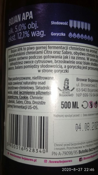 Uwagi: Poprawna APka ale wiele po niej nie trzeba sobie obiecywać, dobre na pewno na szybkie ugaszenie pragnienia czy do obiadu