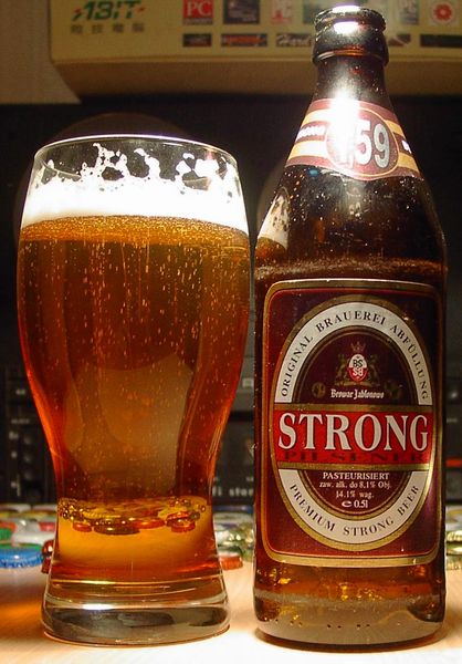 Opakowanie - podoba mi się typ butelek,w jakich sprzedawany jest Strong Pilsener.Etykieta dość ciekawa.