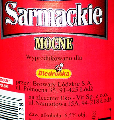 Po długiej nieobecności wybrałem się do Biedronki z myślą o zakupie "Sarmackiego..." z Chociwla. Takie zawsze było w mojej osiedlowej Biedronce. Kiedyś, jeszcze ze starą etykietą, było niepijalne i śmierdziało szmatą. Później w wersji z nową etykietą okazało się piwem całkiem dobrym. Chyba jedynym piwem w pecie jakie w ogóle kupowałem. Wczoraj zauważyłem jeszcze nowszą etykietę, oznaczenie "pasteryzowane" no i producenta - Browary Łódzkie.