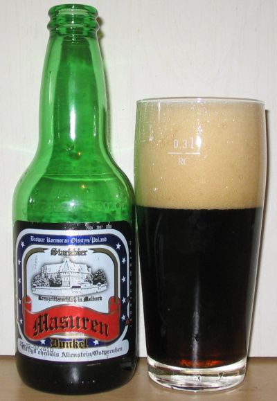 Masuren Dunkel, który piłem miał etykietę w podobnej stylistyce. Tylko zamiast napisu Olsztyńskie, Masuren Dunkel. Ten ma tylko Masuren i nie spotkałem się z taką etykietą. Obie zresztą nie są dodane do Kolekcjonerstwa.