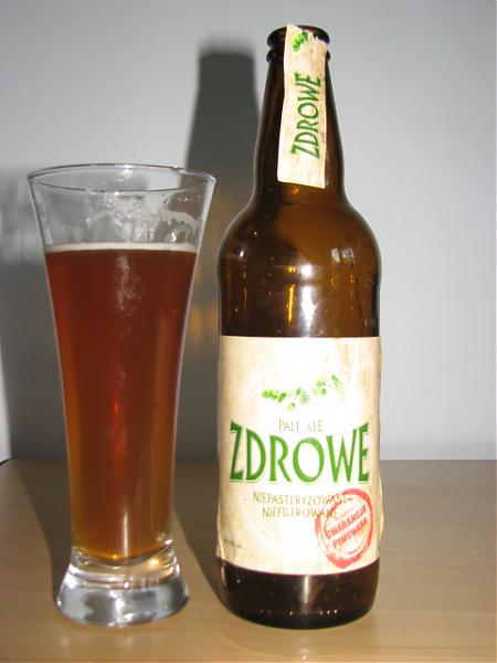 Kolor: Głęboki, opalizujący, wpadający w bursztyn. Piwo dosyć klarowne. 18-21 EBC [na oko ] - stylowo [4] Piana: Równie szybko pojawia się [ze względu na nasycenie], jak znika. Mało zwarta, szybko dziurawiąca się. Zostawia mały wianuszek [2] Zapach: Zdecydowanie chmielowy z niezwykle wyraźną nutą polskiego morza [mam na myśli "zapach" piasku w okolicach latryn ], kwaskowaty. [1.5] Smak: O ile nie trafiłem na zepsutą partię, to smak można określić tylko w jeden sposób - KWAS [słodko-gorzki]. Wylądowało w zlewie po drugim łyku. Bezwzględnie paraliżujący kubki smakowe. Słodkawy z potężną dawką kwaskowatości. Absolutny brak posmaków słodowych, żelazowo-gorzki finisz. [1] Wysycenie: Stanowczo zbyt wysokie jak na reprezentowany styl. Mój egzemplarz buzował w Ale'owym szkle jak szampan [2] Opakowanie: Swojego rodzaju klasyka produktów z półki celujących w EKO. Zielony, jakże naturalny, napis, frywolną czcionką informuje nas o nazwie - tym razem ZDROWE. Tło stanowi równie naturalna bitmapa imitująca drewno. Całości dopełnia wspomniana już banderola rodem z tanich win. [2] Uwagi: Słabiuteńkie do bólu. Mam nadzieję, że Ci, którzy pierwszy raz w życiu wypiją Pale Ale i to z browaru GAB właśnie, zdobędą się jeszcze kiedyś na odwagę i spróbują czegoś lepszego... wszak w stylu pereł nie brakuje
