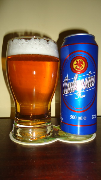 Kolor: Jasny, słomkowy. Wygląda bardzo poprawnie jak na deklarowane 6,8 ekstraktu. [3.5] Piana: Bywało znacznie gorzej. Przy nalewaniu nawet ładna, na dwa palce. Szybko opadła, ale wątły kożuszek i pierścień na brzegu tafli zostały i trzymają się całkiem mocno. Piana pokusiła się o zostawienie śladów na ściankach. Nie jest źle. [3] Zapach: Typowy dla piw bezalkoholowych zapach brzeczki. Słodkawy, kukurydziany. Brak niepożądanych akcentów. [3] Smak: Smak stanowi spore zaskoczenie. To jedno z najsmaczniejszych piw non-alco jakie miałem okazję próbować. Na pierwszym planie słodycz, ale nienachalna. Bardzo wyraźna nuta płatków kukurydzianych, w posmaku landrynki, dalej charakterystyczna dla bezalkoholowych piw nuta niedofermentowanej brzeczki. Na finiszu delikatna goryczka, która nawet nie razi sztucznością - robi wrażenie chmielowej. Generalnie w smaku Ambrosius Free jest wolny od ścierek, chemii oraz innych takich motywów. Ciekawi mnie obecność ryżu w składzie, który dotąd kojarzył mi się głównie z kierunkiem wschodnim. Smakuje dobrze i w swojej kategorii mógłby stać dużo wyżej niż jest. [4] Wysycenie: Do wysycenia nie mam zastrzeżeń. Intensywne, ale bez przesady. [4] Opakowanie: Brzydka niebieska puszka, nawet jak na marketówkę źle to wygląda. Opakowanie potęguje wrażenie bylejakości i zniechęca, na czym traci całkiem przyzwoita zawartość. [1.5] Uwagi: Kolejne niezłe piwo, po które mało kto sięga z uwagi na dostępność w Kauflandzie, brzydkie opakowanie i niską cenę. Szkoda, bo jest smaczne i jako napój orzeźwiający tudzież zamiennik klasycznego piwa mógłby się bardzo dobrze sprawdzić. Będę wracał.