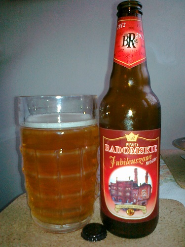 Kolor: Dziwne, ale chyba ciut jaśniejszy niż u "słabszego brata". [3.5] Piana: Biała, dość drobna, dość wysoka, ale nietrwała. [3] Zapach: Taki sam bleee, jak Radomskiego Jubileuszowego. Ścierowaty. [1.5] Smak: O w mordę jeża (Artezany, wybaczcie ). Tu jest dramat. Słodowo-kwaśny z alkoholem w tle... [1.5] Wysycenie: Jak na piwo mocne, to dość wysokie, ale daje radę, pozwala dalej męczyć napój . [4] Opakowanie: Prawie identyczne, jak RJ - goły czarny kapsel, wzornictwo i wykonanie robiący "marketowe" wrażenie, legenda, itp. [3] Uwagi: Mam kolegę, który intensywnym piwoszem nie jest, ale prawie przy każdej okazji spożywania z nim piwa wspomina o swoich praktykach robotniczych (sorka, młodzież, se wyguglajcie ) w radomskim browarze, jak spijał pyszne świeżynki z tanków.