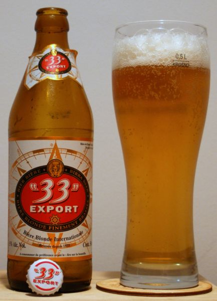 Zgodnie z francuskojęzycznym tekstem z kontry, "Piwo "33" Export jest od dziesięcioleci warzone w zgodzie z tradycją piwowarską, zaś najdoskonalsze składniki są starannie dobierane przez naszych mistrzów browarniczych. Prawdziwy i wyjątkowy smak "33" Export jest znany i ceniony na wszystkich kontynentach i piwo to jest nieodzownym elementem dobrych chwil dzielonych z przyjaciółmi" - klasyczny marketingowy bełkot, znany na wszystkich kontynentach.