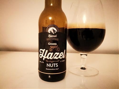 Porter warzony z prażonymi orzechami laskowymi przez craftowy browar austriacki Bierol. 15,6° Plato. 5,7 % alk.