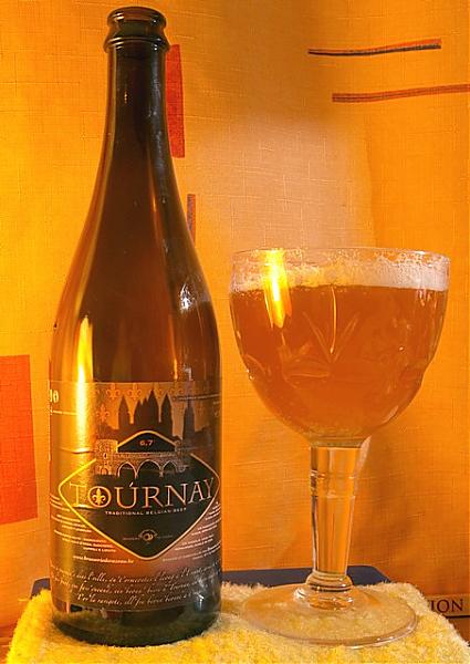 Opakowanie: flaszka Vichy, etykieta czarno-brązowa, nocna z cieniem katedry Tournay i ryciną mostu "Pont des Trous" na Skaldzie, prawie taka sama etykieta zdobi Belgian Stouta i Noela, kapsel firmowy [5]