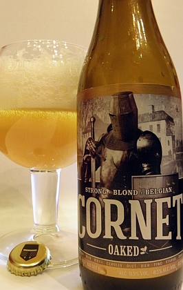 Butelka 330ml z interesującą kolekcjonerską etykietą z rycerzem w średniowiecznym hełmie garnczkowym, powtórzonym na kapslu. Trochę to czasowo nie pasuje do historii browaru i pana Corneta, ale co tam, oku miłe. Na kontrze podstawowe informacje w kilkunastu językach.