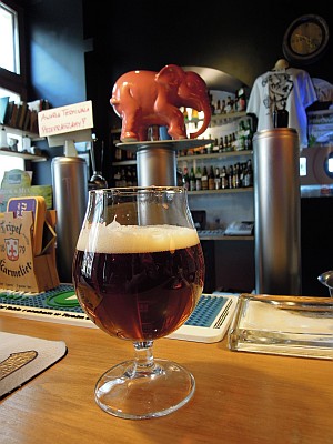 Już przy nalewaniu dochodzą zapachy rodem jakby z win leżakowanych, potem dominuje piernikowy/korzenny zapach. Piana średniogruba, osiada, ale pozostaje sporej grubości pozostałość, osadzając się na ściankach. Kolor ciemnobursztynowy, klarowny. W smaku alkoholowa, wyraźna dominanta - pod tym względem trochę rozczarowuje. Gdzieś w tle niewyraźna goryczka, ale brak mi tutaj jakiś karmelowych akcentów. Nie wiem czy goryczka przypadkiem nie pozostaje na podniebieniu po przełknięciu /jadłem przed na wpółdojrzałego banana / Pije się z trudem, jedynie zapach rekompensuje ułomność smakowych elementów.