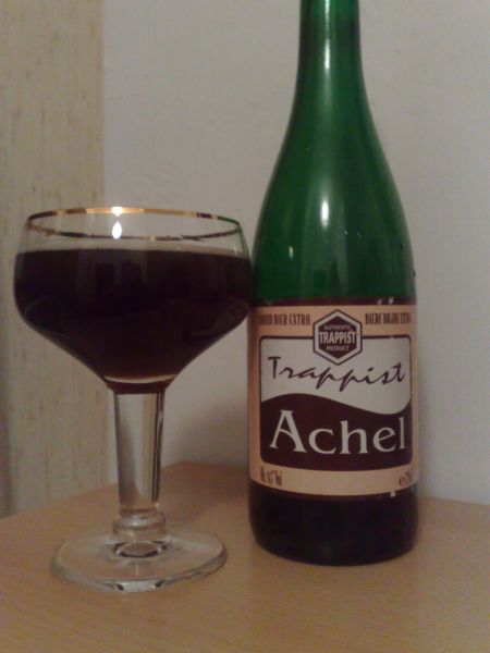 Opakowanie: Prosta etykieta Achel na dużej zielonej butelce, zamykanej nieco szerszym, złotym kapslem.