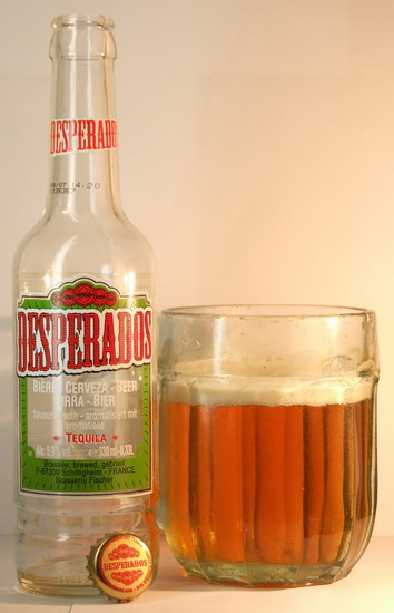 Piwo zakupione na promocji w Careffourze w 3-paku z firmowym podkoszulkiem Desperados. Butelka 0,33l. Moc 5,9%, ekstrakt 15,3. Barwa średnio ciemno złota, ładna. Piwo klarowne. Piana biała, niewielka, drobniutka i długo się trzyma. Zostawiała obfite ślady na ściankach kufla. Zapach typowy dla piw aromatyzowanych. Słodko kwaśny, najbliżej jabłkowego. Nie za bardzo zachęcający. Smak kwaśno jabłkowo cierpki. Pod koniec każdego łyka czuć również wyraźną gorzkość. Pojawiają się także nutki alkoholowe, ale nie wiem czy Tequilowe. W posmaku dominuje gorzkość. Całość oczywiście podszyta mocną słodyczą i chemią. Wysycenie zdecydowanie słabe, już od samego początku. Opakowanie to malowana butelka z bezbarwnego szkła. Całość ładnie kojarzy się z kolorytem ojczyzny Tequili. Jedynie kapsel wyraźnie odstaje od całości. O dziwo nawet ekstrakt jest podany. Generalnie to piwo ma tylko wygląd. Wszystkie inne parametry są przeciętne lub słabe. Całość ocenił bym tak na 3 (1 – 6).