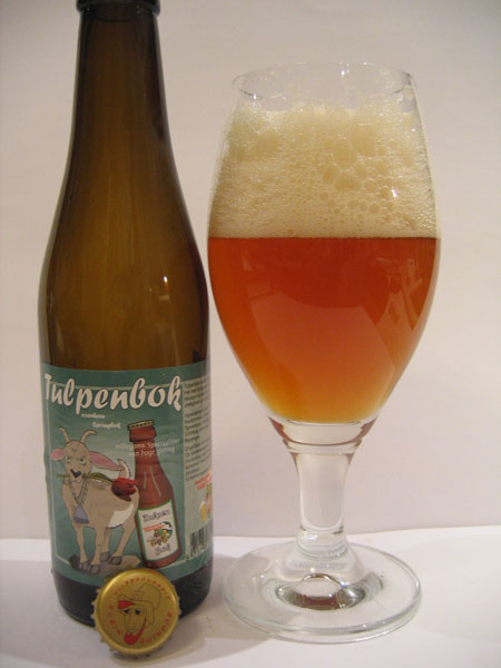 "Tulpenbok is een fris voorjaarsbier met een lichte caramelsmaak, iets moutig en een mooie volle zoetigheid door gebruik van honing."