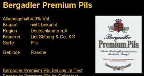 Qbric miał w temacie LIDL-STIFTUNG & CO : Radler, Alsterwasser wątpliwości co do nazwy Bergadler. Przypuszczam, że jest to marka przeznaczona dla sklepów Lidl. Bo na kontrze mojego Premium Pilsa pisało po Polsku, że tak właśnie jest.