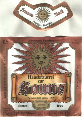 Bischberg to wioska leżąca zaledwie kilka kilometrów na północny zachód od miasta Bamberg. Od 1856 roku browar „Zur Sonne” prowadzi tam rodzina Schumann, w budynku, którego prawa warzenia i wyszynku sięgają roku 1590. Roczna produkcja zakładu wynosi 2000 hl. piwa. Warzy się je w zależności od zapotrzebowania raz lub dwa razy w tygodniu.